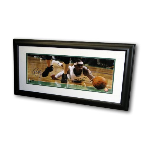 Autographed Rajon Rondo 8-by-20 inch framed panoramic. The photo is of the steal he had against the Orlando Magic in the 2010 playoffs. In the play Rondo dove flat-out, thrust his arm between Jason Williams' legs, used his right hand to stop the ball and scooped it into his control. When he transferred the ball from his right to left hand, Rondo was still laying on the floor. Rondo then bounced to his feet, dribbled hard twice, crossed over the Magic guard and hit a twisting, spinning layup. The hustle and athleticism on this play showcased why he is considered one of the best point guards in the NBA. Rondo has been the starting point guard for the Boston Celtics since the 2007-08 season. In 2010 Rajon was selected to his first All Star game and was also selected to the NBA All-Defensive first team. comes with powers collectibles coa and matching holograms